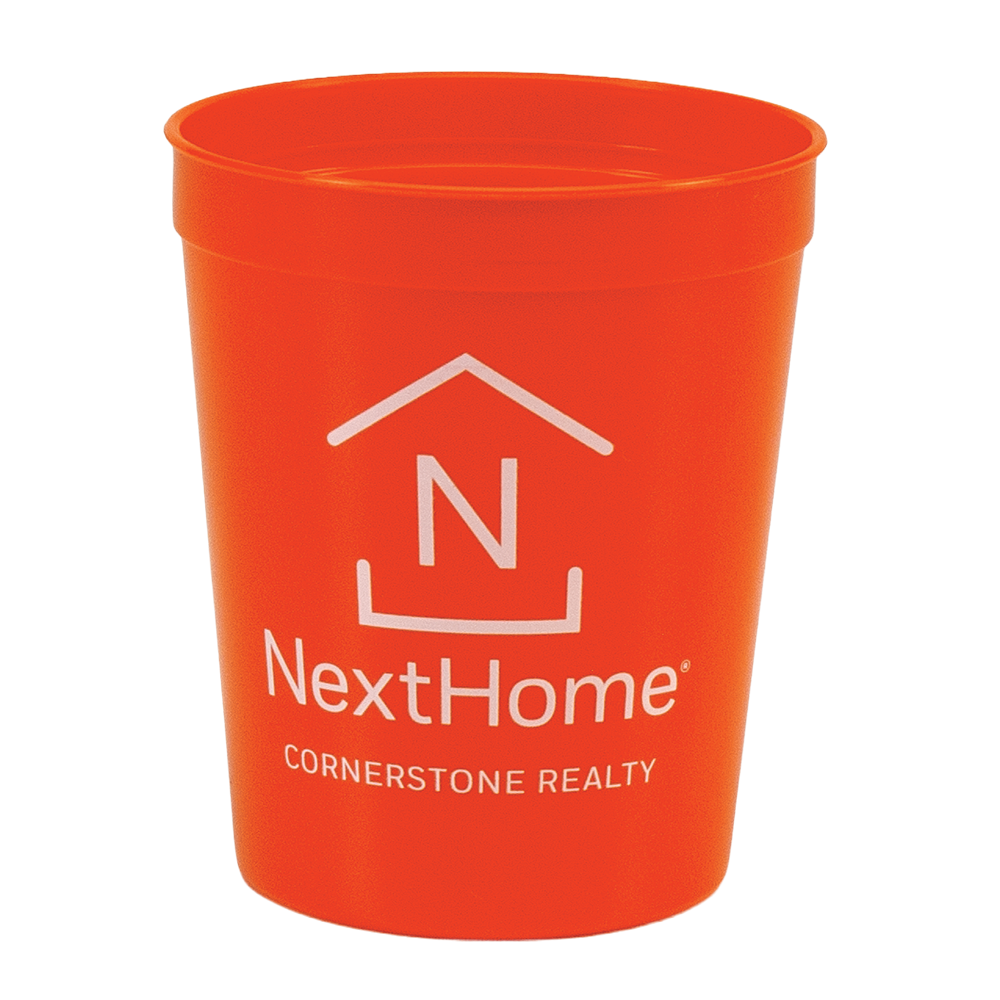 These reusable 16 oz. Plastic Smooth Stadium Cups are top rack dishwasher safe and available in 14 sports colors. No extra charge for same color second side imprint. Add a Black or Clear lid which comes with or without a slit for straw.
